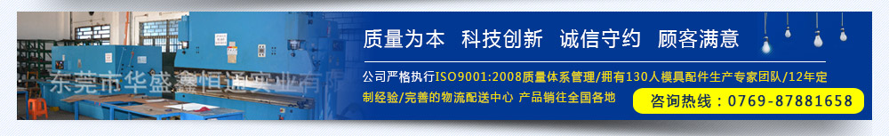 東莞市華盛鑫恒通實業有限公司成立于2003年08月,總占地面積6200㎡,現有員工130人(其中本科以上技術研發人員8人),是一家致力于各種行業清洗架、鋼化架、模組頂針測試治具的專業非標夾、治具設計制造商。公司擁有CNC加工中心(北京精雕)、沖床、剪板機、折彎機、線切割機、氬弧焊機、點焊機、碰焊機、車床、銑床、磨床、鉆床、攻牙機、超聲波清洗機等不同種類不同規格、10T-200T等各類加工設備90臺。公司嚴格執行ISO9001:2008質量體系管理,品質檢測儀器分別有:現代化高端檢查設備投影儀(2.5次元檢測儀)、測硬器、鹽霧測試機若干。等經過長期的摸索,擁有一批高素質的生產隊伍及專業的工程技術人員,設計各種配套設施。 |